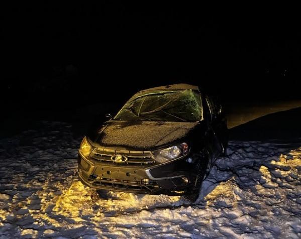 При опрокидывании автомобиля в кювет погибла пассажирка. Водителя доставили в больницу.