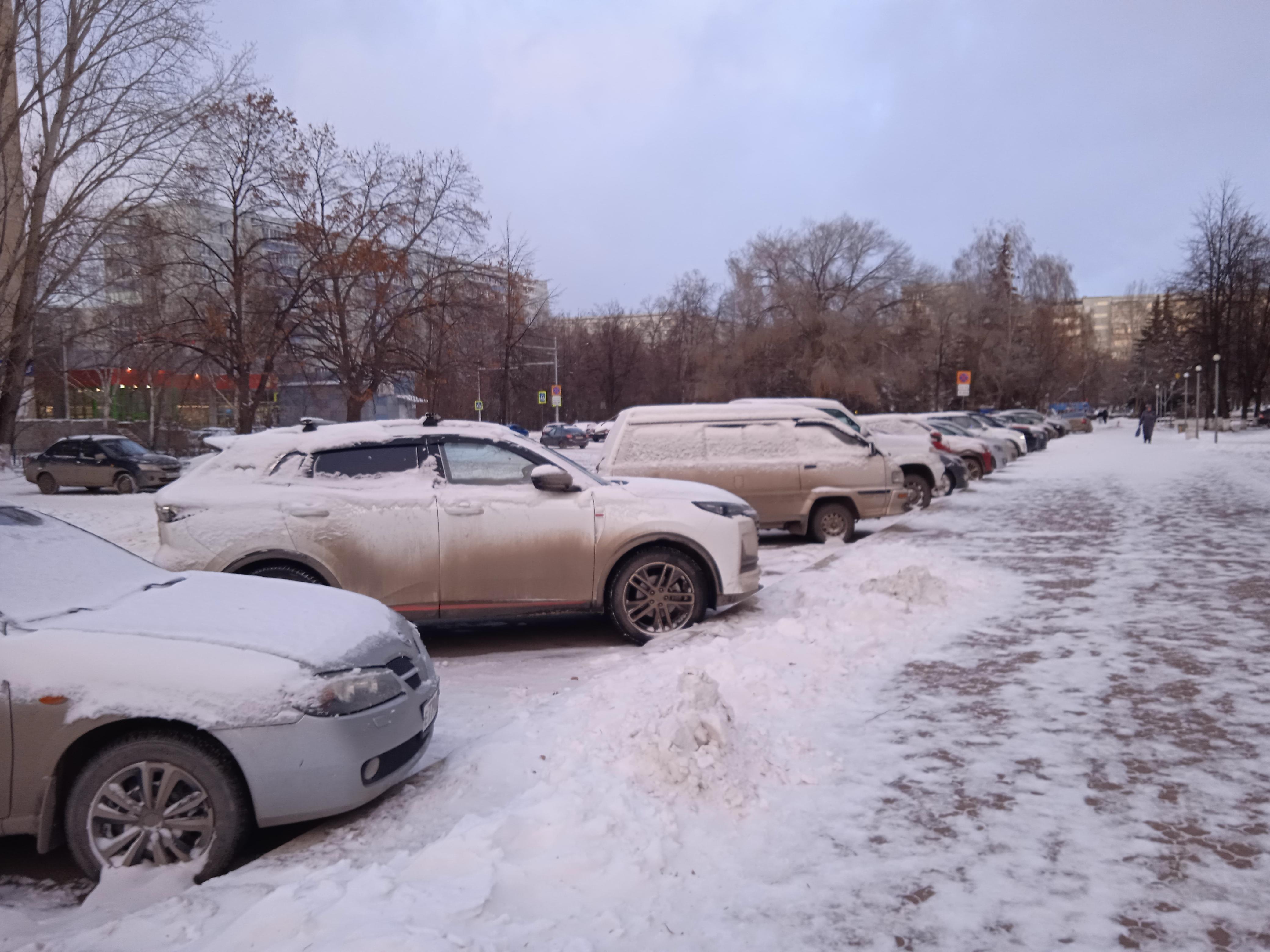 Припаркованные автомобили создают препятствия для проезда снегоуборочных машин во дворах.